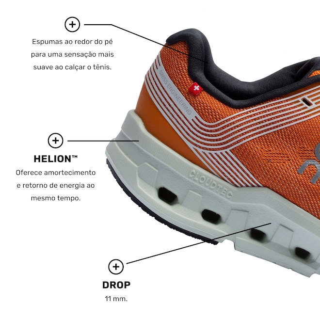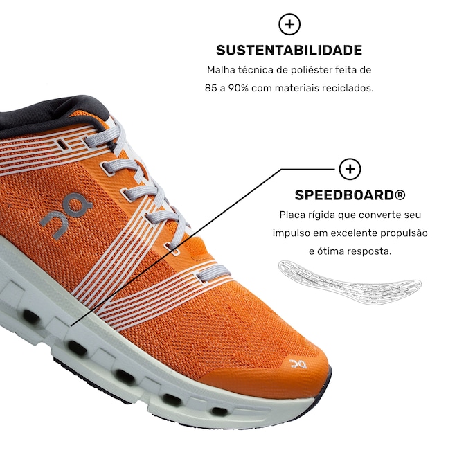 Confira as tecnologias e benefícios do calçado que irão te surpreender:CloudTec®: Os elementos Cloud flexíveis se comprimem vertical e horizontalmente, permitindo o encaixe suave da sua passada. Além de proporcionar um suporte para uma decolagem segura e explosiva, ao retornar os Clouds para a posição original.Speedboard®: Placa rígida que converte seu impulso em excelente propulsão e ótima resposta.Helion™: Oferece amortecimento e retorno de energia ao mesmo tempo.Seja qual for sua missão e suas metas, chegou a hora de arrancar!ref: 976639