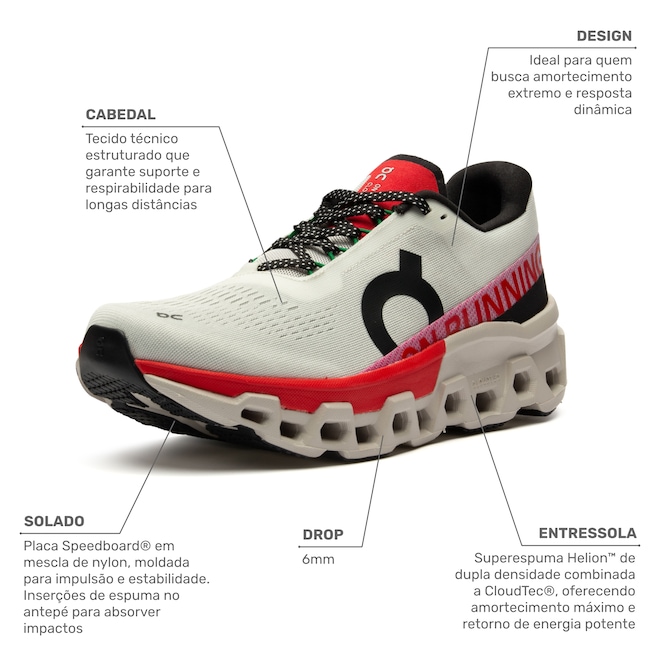 Experimente a revolução da corrida com o Tênis Cloudmonster da On Running, equipado com as tecnologias de ponta CloudTec e Helion na entressola.