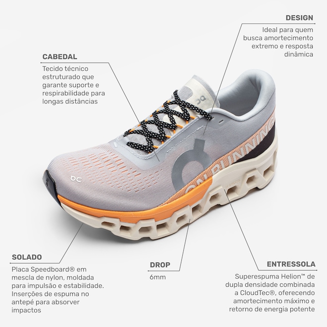 Experimente a revolução da corrida com o Tênis Cloudmonster da On Running, equipado com as tecnologias de ponta CloudTec e Helion na entressola.