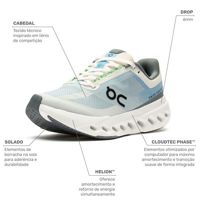 Com um drop de 6mm, o Cloudsurfer Next equilibra perfeitamente suporte e agilidade, tornando-se o parceiro ideal para suas corridas mais intensas.