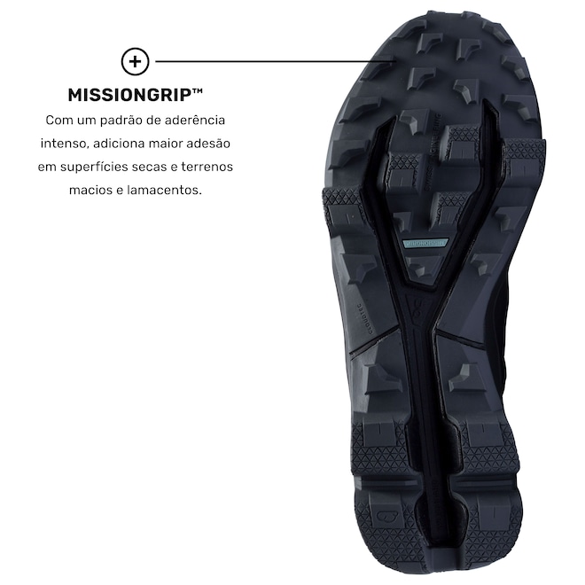 Missiongrip™: Com um padrão de aderência intenso adiciona maior adesão em superfícies secas e terrenos macios e lamacentos.