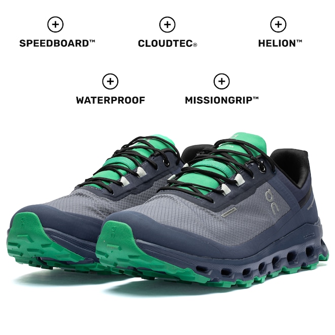 Desenvolvido com DNA suíço, o On Running Cloudvista Waterproof é indicado para corridas suaves de 5K em terrenos de terra batida, trilhas leves e de dificuldade média, possui design minimalista com o diferencial de impermeabilidade da tecnologia Waterproof que ajuda a manter os pés secos em trilhas de todos os níveis e com todos os climas.