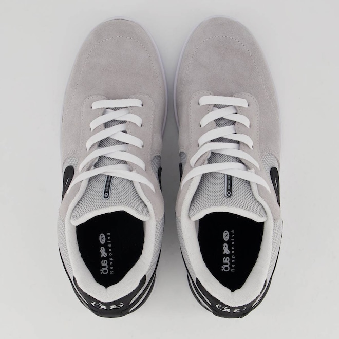 Granular A+: Solado produzido com pequenos grânulos de borracha exatamente na quantidade necessária, consumindo menos energia e praticamente zerando o resíduo de produção. Composta por materiais nobres, mesclando borracha natural da seringueira e borracha sintética, para um produto de alta performance, flexibilidade e aderência ao solo.Composição cabedal (parte superior): Camurça com partes em sintético