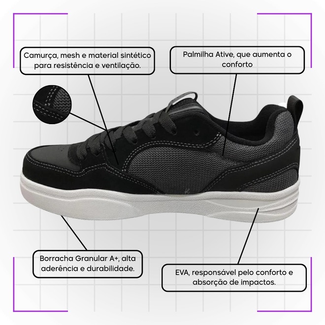 Cabedal: Mesh e Sintético