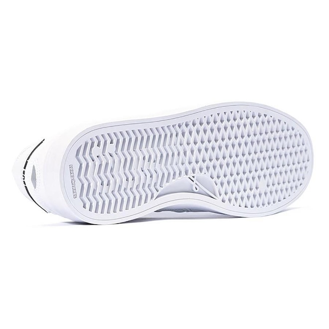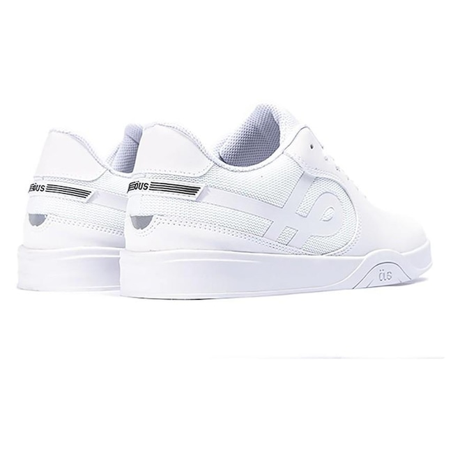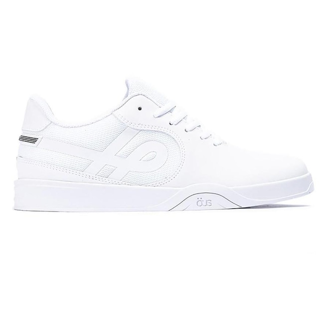Tênis OUS com etiqueta na lingueta aplicada por fusion, calcanhar delineado com contraforte estruturado, solado de borracha A+ e palmilha Circular Hard.