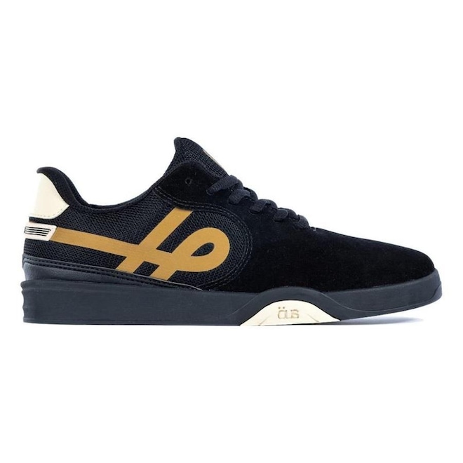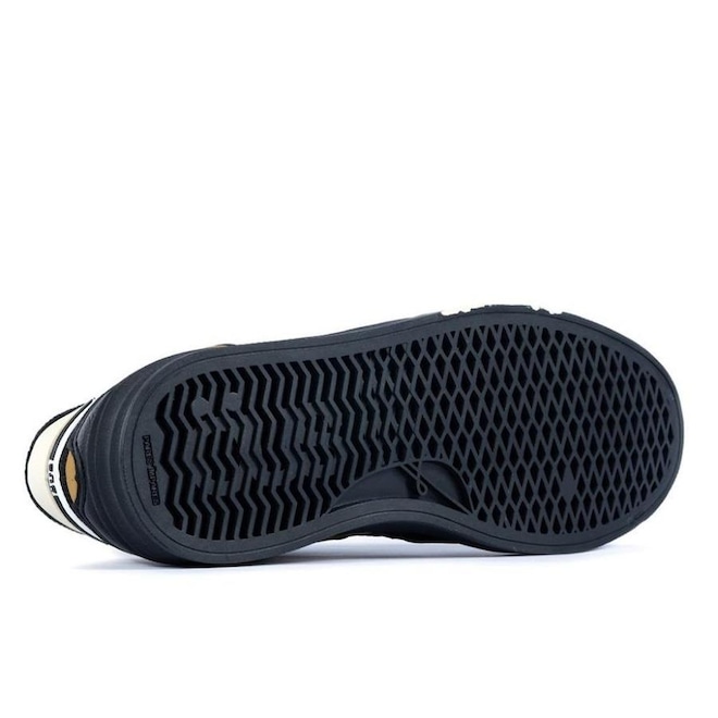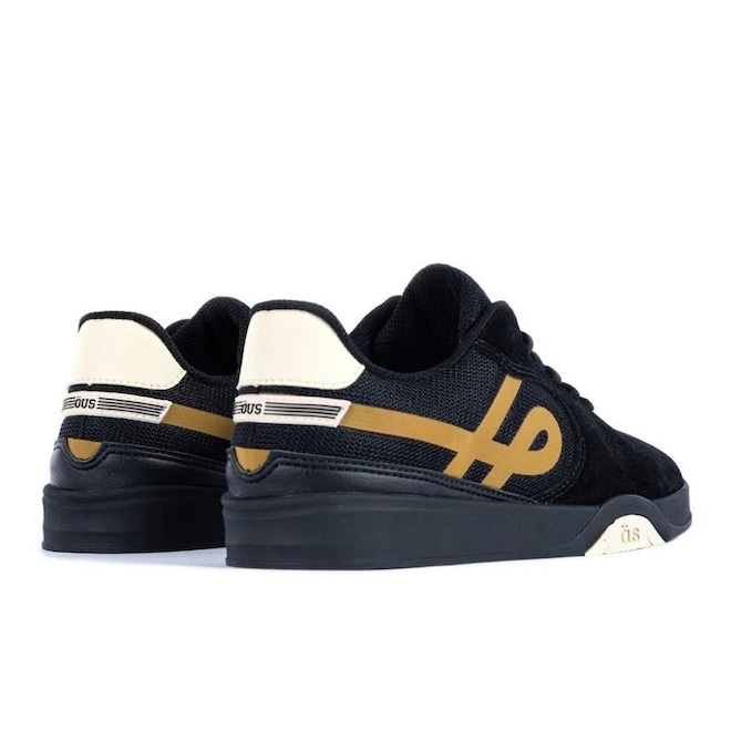 Tênis OUS com etiqueta na lingueta aplicada por fusion, calcanhar delineado com contraforte estruturado, solado de borracha A+ e palmilha Circular Hard.