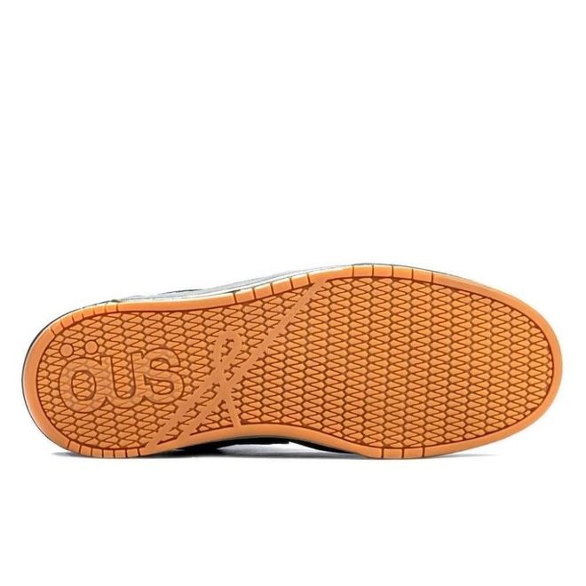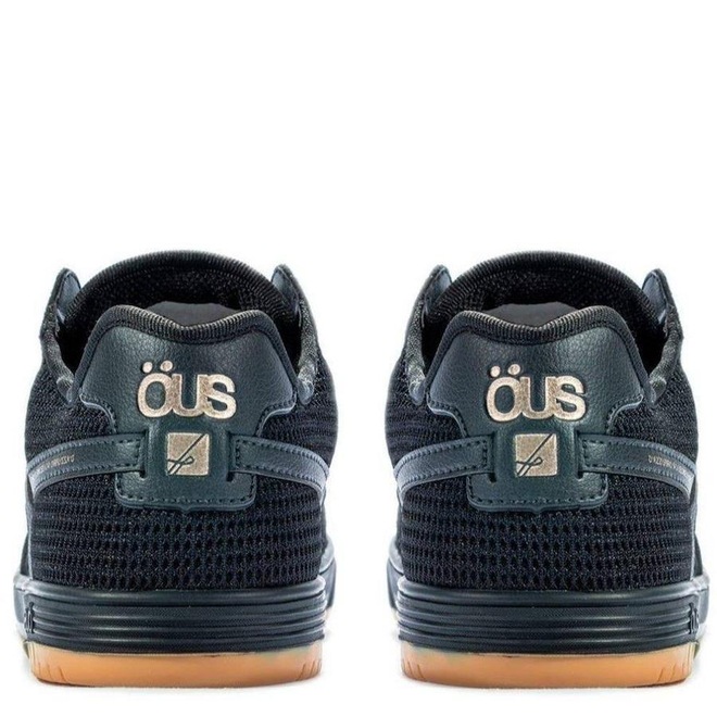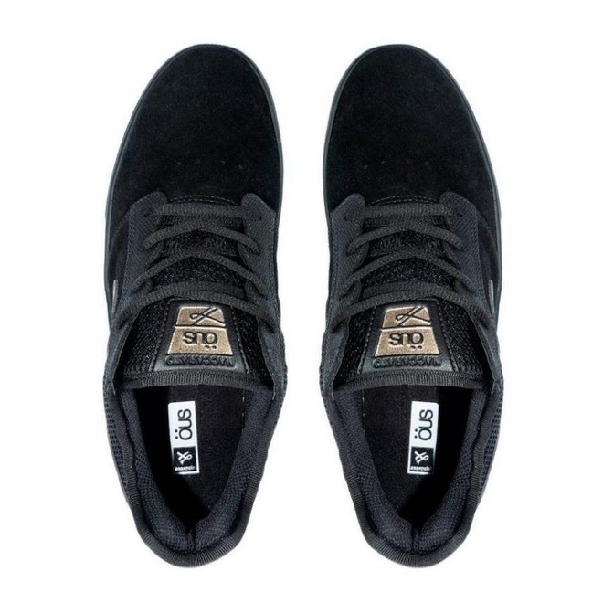 Tênis OUS Pro-model de Giancarlo Naccarato, calcanhar delineado com contraforte estruturado, solado de borracha A+, palmilha circular Hard e caixa especial floral.