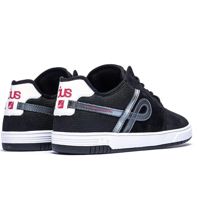 Tênis OUS Pro-model de Giancarlo Naccarato, calcanhar delineado com contraforte estruturado, solado de borracha A+, palmilha circular Hard e caixa especial.
