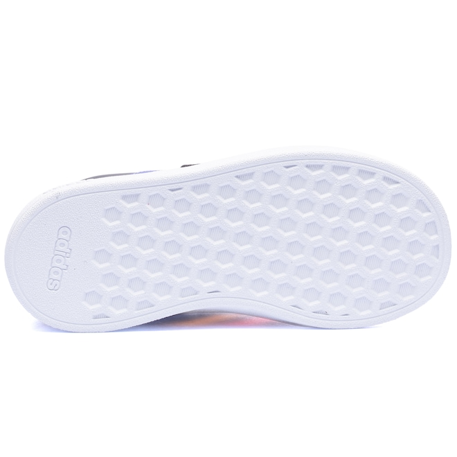 Esse Tênis para Bebê adidas Grand Court 2.0 CF possui estrutura em sintético e têxtil com reforço acolchoado no colarinho que oferece mais proteção para a pele delicada do bebê.