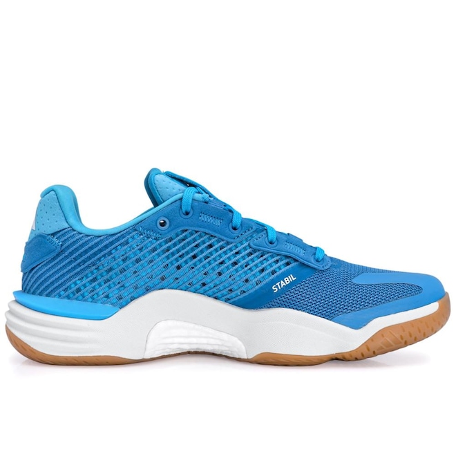 Descrição do Tênis Adidas Stabil 16 Azul Claro e Branco