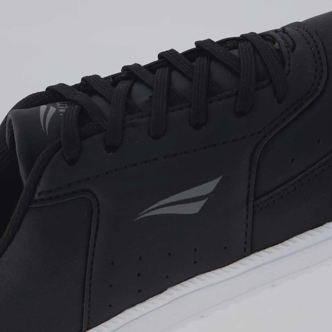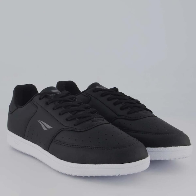 Composição cabedal (parte superior): Produzido em material sintético Palmilha: EVA forrada e removível; facilita na higienização Forro: Material têxtil com acolchoamento reforçado Solado: Borracha resistente e antiderrapante Lingueta: Macia e acolchoada Cor predominante: Preta Indicado para: Casual Gênero: Masculino Origem: Nacional Ajuste: Cadarço Peso aproximado: 640g o par n° 40