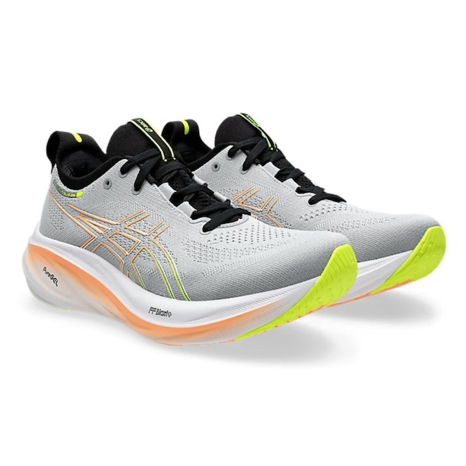 O Tênis ASICS Gel-Nimbus 26 Masculino é ideal para quem busca alta performance nas corridas. Com cabedal têxtil e tecnologia Engineered Knit, proporciona excelente respirabilidade e ajuste confortável. A entressola em EVA, aliada à tecnologia FF Blast™ Plus Eco, oferece amortecimento superior e retorno de energia, garantindo passadas mais suaves e eficientes. O solado de borracha HYBRID ASICSGRIP™ proporciona tração excepcional e durabilidade avançada, mesmo em superfícies desafiadoras. O suporte acolchoado adiciona estabilidade, enquanto o design moderno e funcional do Gel-Nimbus 26 garante um desempenho otimizado em todas as suas corridas. Aposte no ASICS Gel-Nimbus 26 e sinta a diferença em cada quilômetro percorrido. Não perca a chance e confira já!