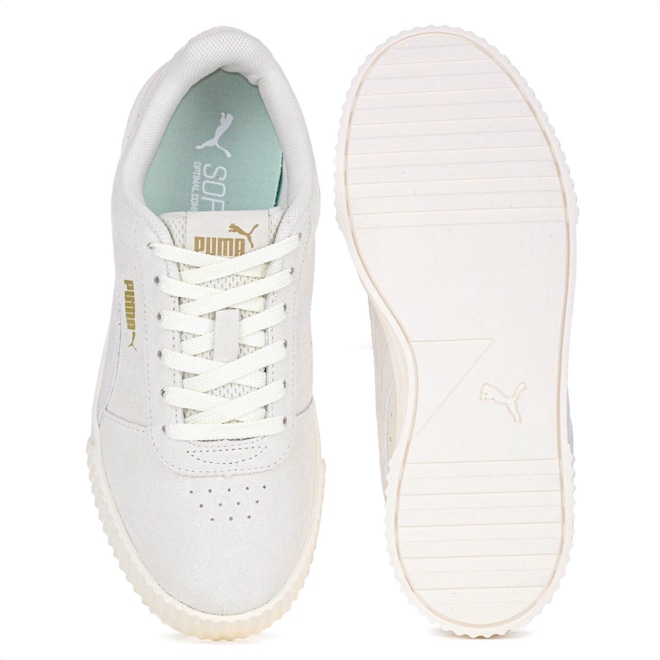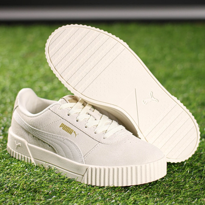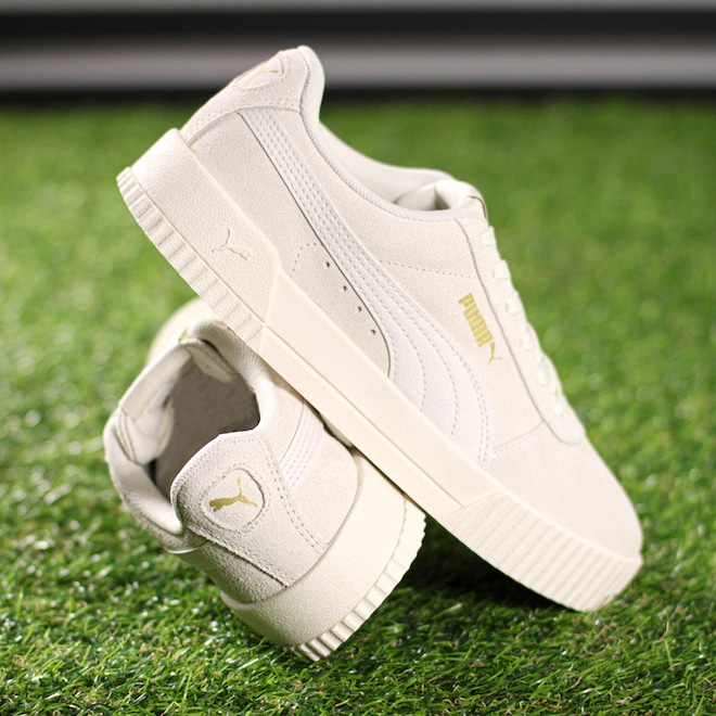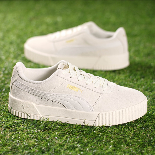 Estilo retrô e conforto de sobra para seu dia a dia! Tênis Puma Carina BDP Off White - Feminino Ficha Técnica: Marca: Puma Gênero: Feminino Cor: Off White Silhueta: Baixa Cabedal: Suede para um visual streetwear autêntico Palmilha: Acolchoada para máximo conforto Solado: Borracha para maior aderência Fechamento: Cadarço para ajuste confortável Indicado: Dia a dia e eventos sociais Tecnologia: SoftFoam, solado interno de dupla densidade para amortecimento superior e ajuste personalizado Diferenciais: Faixa Puma Formstrip no centro e laterais; Logo Puma na lateral, língua e calcanhar; Design inspirado nos anos 80 com toque das praias californianas Cansada de tênis que machucam ou não oferecem suporte ao longo do dia? O Puma Carina BDP chegou para mudar isso! Por que investir? Inspirado no estilo retrô das praias californianas, ele combina um design moderno com a tecnologia SoftFoam, proporcionando amortecimento e ajuste perfeito para os pés. O cabedal em suede adiciona um toque street, enquanto o solado de borracha garante aderência e estabilidade. Leve seu estilo a outro nível com conforto absoluto. Conteúdo da embalagem: 1 par de Tênis Puma Carina BDP Off White - Feminino