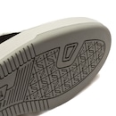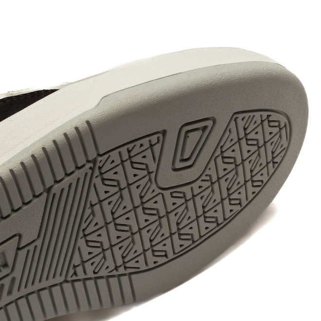 O cabedal é sintético, sua entressola e solado são emborrachados. Além disso, tem lingueta flexível e palmilha removível.