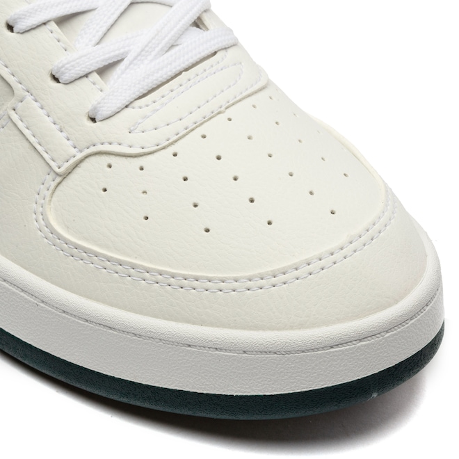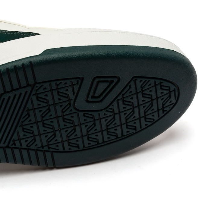 O cabedal é sintético, sua entressola e solado são emborrachados. Além disso, tem lingueta flexível e palmilha removível.