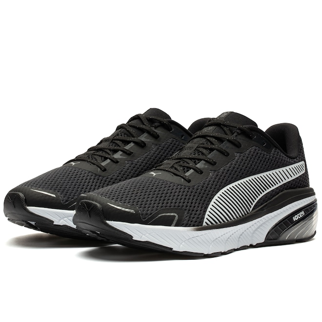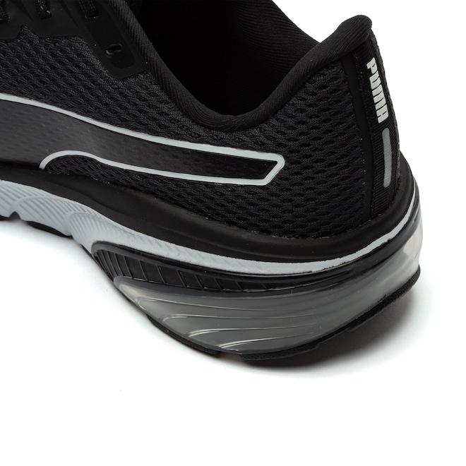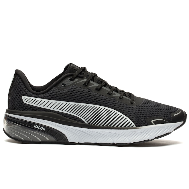 Além disso, o sistema de amortecimento 10CELL, exclusivo da PUMA, oferece estabilidade e suporte superiores, utilizando uma estrutura em forma de grade com células que absorvem o impacto e proporcionam um retorno de energia eficiente.