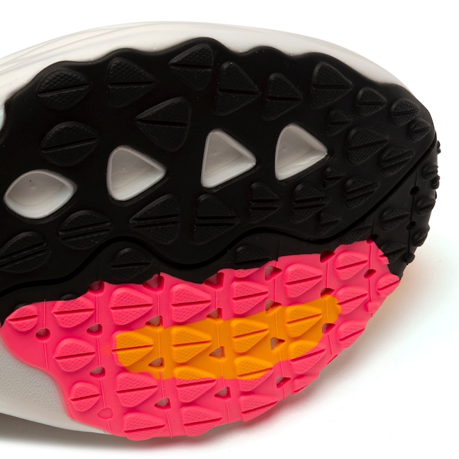 A entressola em EVA oferece amortecimento responsivo, enquanto o solado de borracha garante tração e durabilidade em qualquer superfície.