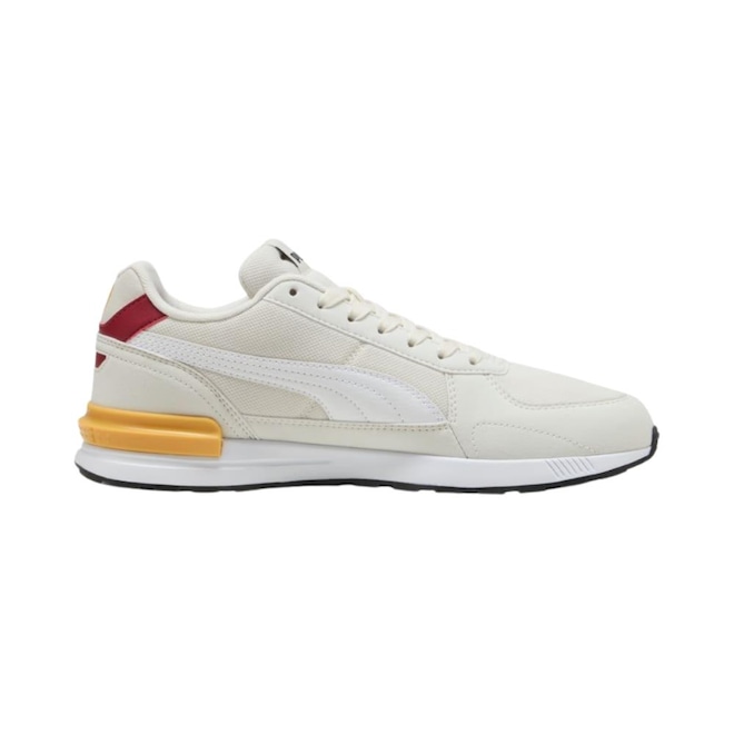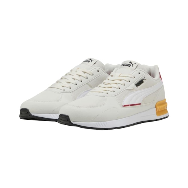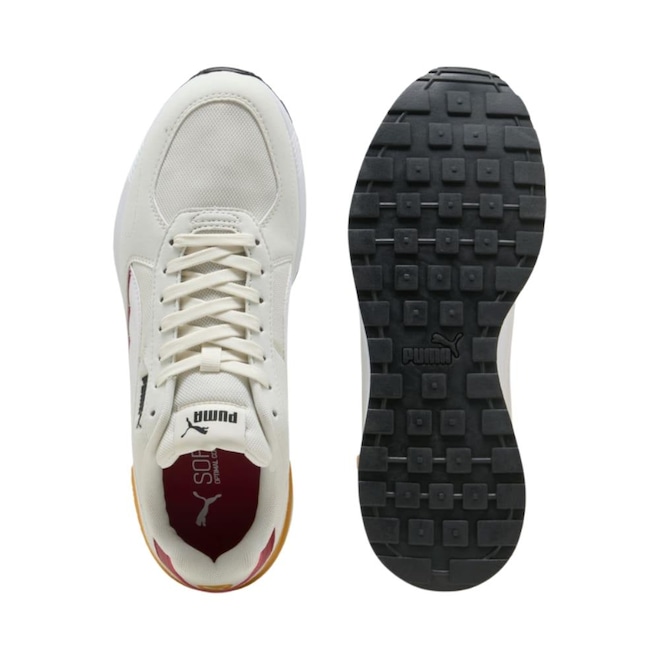 Inspirado nos modelos de corrida dos arquivos PUMA, o tênis Gravitation traz construção do cabedal em uma variedade de materiais, sobreposição arrojada sobre o ante-pé e texturas esculturais na lateral. Com palmilha SoftFoam+ e entressola IMEVA para maior conforto, o modelo traz ainda acessório de TPU no calcanhar e detalhe inspirado no estilo modular como elemento de design de 2021.