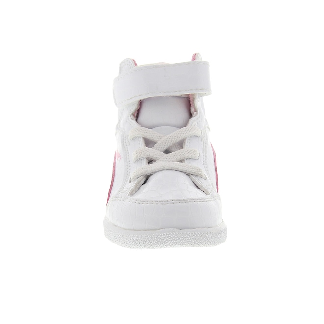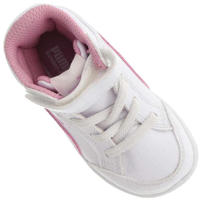 O Tênis Puma Ikaz Mid está com design moderno e arrojado para valorizar os pezinhos das meninas vaidosas e cheias de charme no dia a dia, passeios e volta às aulas. De cano alto, o cabedal (parte de cima do tênis) é em material sintético, com reforço acolchoado em mesh no colar do tornozelo para absorção do suor, com proteção e conforto. O diferencial no tênis Puma é a palmilha, com tecnologia Kinder-Fit, sistema que garante um ajuste mais preciso para o pé das crianças. Seu ajuste é facilitado com rapidez e praticidade pelo cadarço elástico e tira em velcro. Além disto, o solado em borracha oferece aderência na superfície para segurança. Não perca a oportunidade e garanta conforto e segurança para os pezinhos femininos. Compre agora!