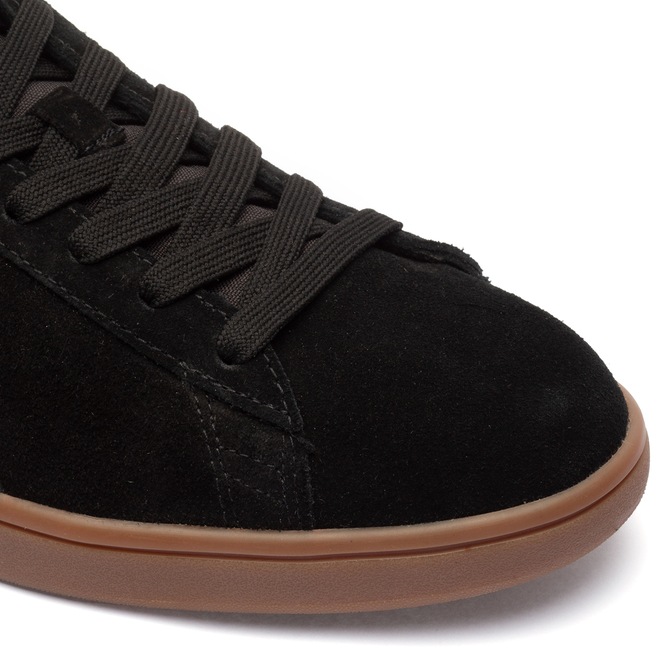 O cabedal (parte superior do calçado) apresenta a durabilidade da camurça com reforço acolchoado no colar do calcanhar para minimizar o atrito de contato.