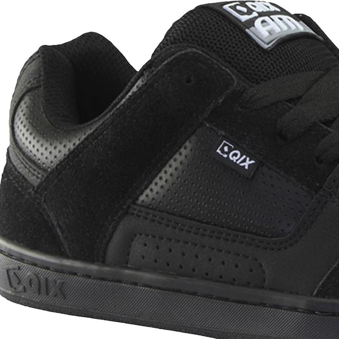 A Qix está desde 1993 fazendo parte da história do skate. Apresenta o logotipo da marca no calcanhar e palmilha. Possui etiqueta na parte interna da língua. Palmilha em EVA antibacteriana. Solado em borracha (costura dupla no solado) garantindo assim maior durabilidade e resistência que só a Qix pode oferecer.