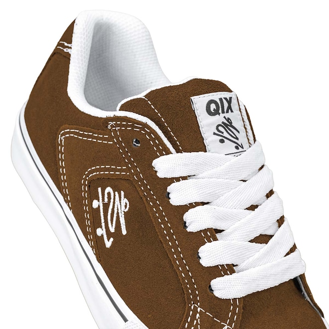 Desenvolvido para unir conforto, resistência e durabilidade, o Qix Chorão Park Café Latex é ideal para rolês de skate, uso urbano ou momentos casuais. O cabedal em camurça natural garante firmeza e sofisticação, enquanto o solado vulcanizado oferece segurança e tração em cada passo.