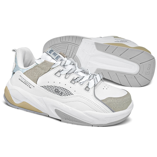 - Combine o Tênis Qix Branco Cinza com roupas casuais, como jeans e camisetas, para um visual clean e moderno.