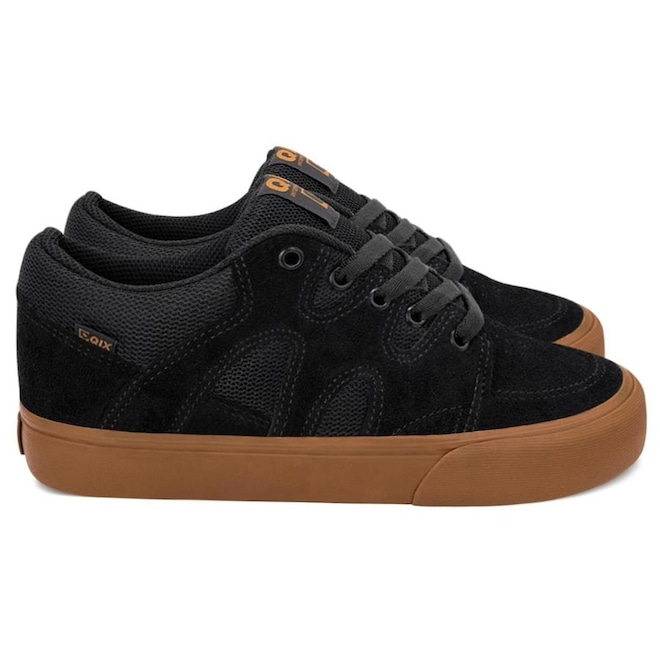 Além disso, o tênis conta com solado de borracha vulcanizada, que garante maior aderência em superfícies lisas e maior flexibilidade durante as manobras.