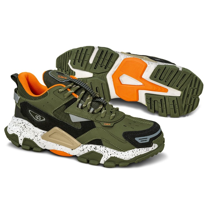Com design robusto e monocromático em Verde , o Trek entrega versatilidade e presença marcante em qualquer ocasião, seja em produções casuais ou esportivas. Seu cabedal reforçado, confeccionado em laminado sintético, nylon e tecidos, foi projetado para suportar o uso intenso, enquanto a palmilha anatômica em EVA garante conforto prolongado e absorção de impacto a cada passo.