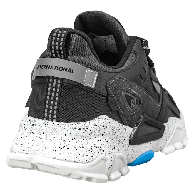 Com design robusto e monocromático em preto, o Trek entrega versatilidade e presença marcante em qualquer ocasião, seja em produções casuais ou esportivas. Seu cabedal reforçado, confeccionado em laminado sintético, nylon e tecidos, foi projetado para suportar o uso intenso, enquanto a palmilha anatômica em EVA garante conforto prolongado e absorção de impacto a cada passo.