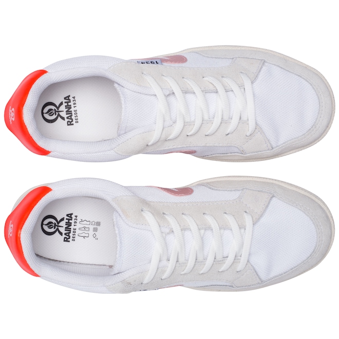 O tênis Rainha possui cabedal (parte superior do calçado) tem material têxtil e em camurça, promovendo ainda mais charme à peça.
