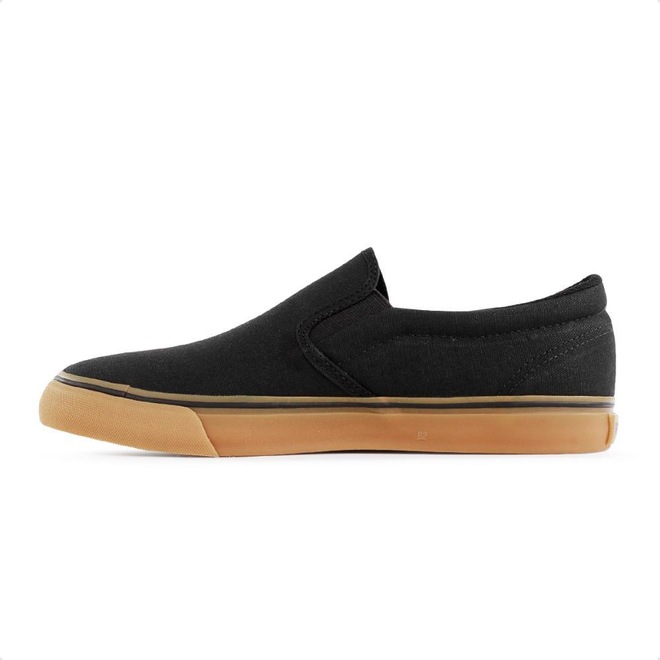 O design slip on permite que o calçado seja colocado e retirado facilmente, sem a necessidade de cadarços. Uma escolha prática para quem está sempre em movimento.
