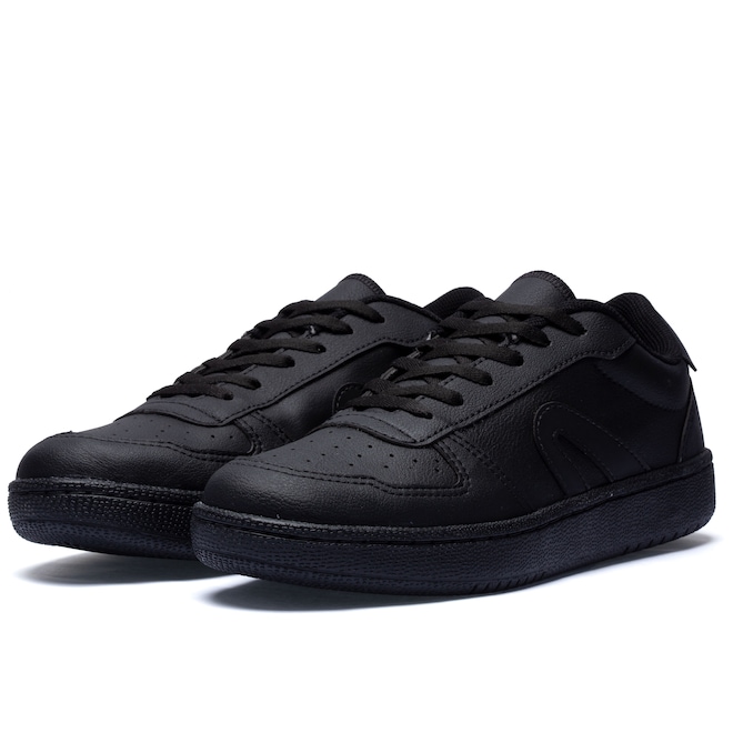 O cabedal (parte superior do tênis) é em material sintético resistente com o icônico logo na laterais.