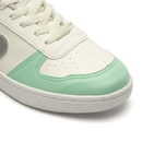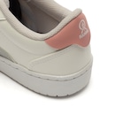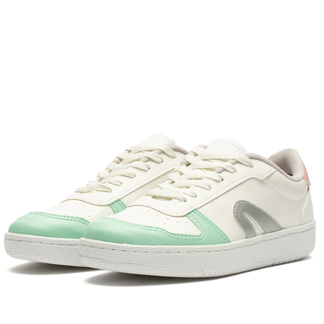 O cabedal (parte superior do tênis) é em material sintético resistente com o icônico logo na laterais.