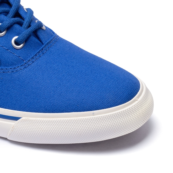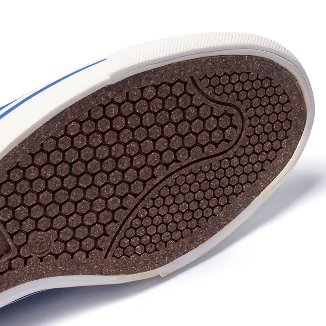 Seu cabedal (parte superior do tênis) é em lona de algodão resistente com reforço acolchoado no colar do calcanhar.