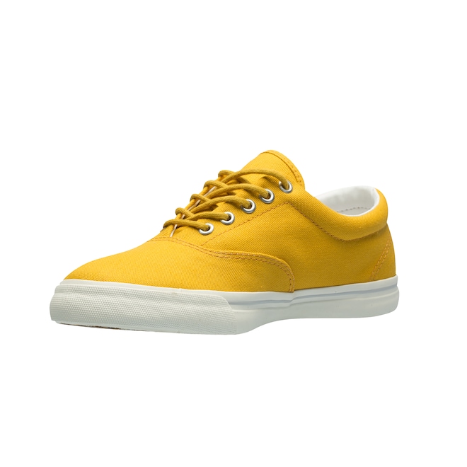 Seu cabedal (parte superior do tênis) é em lona de algodão resistente com reforço acolchoado no colar do calcanhar.