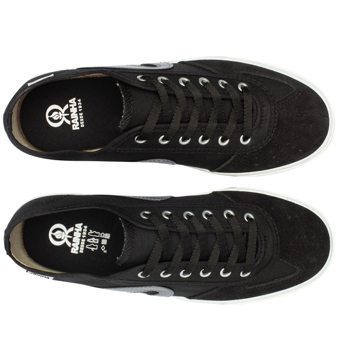Já a palmilha do Tênis Rainha Masculino é em EVA forrado e removível para facilitar a limpeza e troca.