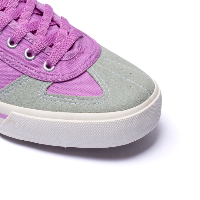 O cabedal (parte superior do tênis) é em lona de algodão resistente e detalhes em camurça, entressola reforçaca por tira emborrachada em toda a extensão, além de solado diferenciado por material ecológico.