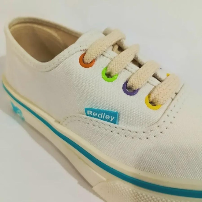 Tênis Redley Originals Collab MTV Branco O Tênis Redley Originals Collab MTV Branco une o estilo icônico da Redley com a ousadia da MTV, em uma peça que celebra a cultura pop com sofisticação. Este modelo exclusivo destaca-se pela sua base clean em branco, complementada por detalhes vibrantes que traduzem a energia da colaboração. Estilo Único: O branco predominante é complementado por detalhes coloridos e gráficos inspirados na MTV, criando um visual moderno e cheio de personalidade. Conforto Impecável: Palmilha macia e interior acolchoado garantem conforto durante o uso prolongado, ideal para o dia a dia. Durabilidade Superior: Feito com materiais premium que oferecem resistência e um acabamento refinado, mantendo a qualidade mesmo com uso frequente. Solado Antiderrapante: O solado em borracha proporciona tração e estabilidade em diferentes superfícies, unindo segurança e funcionalidade. Versatilidade: Perfeito para quem busca uma peça que se destaque em qualquer look, do casual ao criativo. O Redley Originals Collab MTV Branco é mais que um tênis; é uma expressão de estilo, nostalgia e modernidade. Ideal para quem valoriza exclusividade e a união entre moda e cultura. Sobre a marca Redley O tênis Redley foi criado por Peter Simon em 1983 e inicialmente foi vendido nas lojas Cantão. Com a grande procura, em 1985, Peter decidiu inaugurar uma loja onde iria vender sua linha completa de calçados e vestuários. A Redley acredita que o melhor calçado que existe é a sola dos nossos pés. Por ela poderíamos passar a vida pisando em gramas e areias. Já que não podemos passar a vida descalços, os modelos de tênis foram criados na tentativa de aproximar essas sensações, dando liberdade e conforto quando estão calçados. A marca caiu rapidamente nos gostos dos jovens com estilos de vida no surf, skate e bodyboard. Chegaram na Europa, viraram tendência em Portugal, cruzando fronteiras. Produto Original.