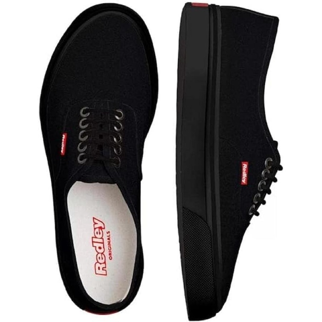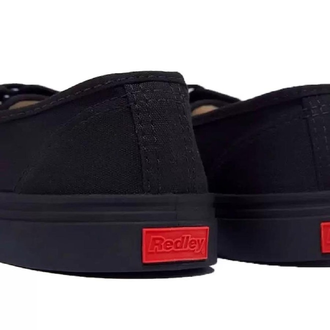 Características: Um dos principais benefícios é a sua composição, feita com lona 100% algodão e solado e banda Re.use, o que reduz o impacto ambiental da produção de calçados. É um modelo feito sem qualquer tipo de origem animal em sua composição. Além disso, ele possui logo traseiro e uma etiqueta na lateral, que são marcas registradas da Redley e garantem a autenticidade do produto. O material utilizado na fabricação do tênis é de alta qualidade e durabilidade.