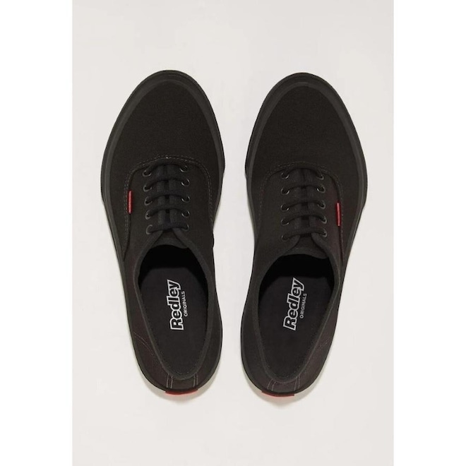 O morcegão queridinho da Redley. Tênis todo preto e com as assinaturas Redley em vermelho. Este tênis não contém nenhum material com origem animal.