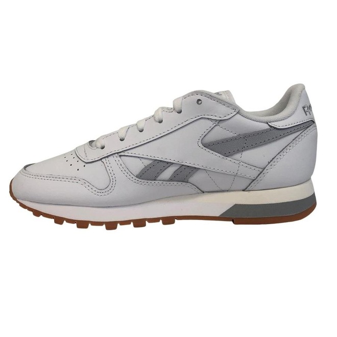 - Sobre o produto - Tênis Reebok Classic Leather - Feminino - Branco e CinzaNome: Tênis Reebok Classic Leather Gênero: Feminino Indicado: dia a dia Parte superior: sintético Fecho de renda Entressola em EVA Forro têxtil Solado emborrachado- ref: M0Y49U