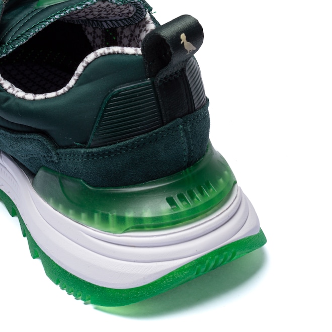 A entressola possui a maciez e leve amortecimento do EVA em toda a extensão com estabilizador no calcanhar para mais firmeza e suporte.