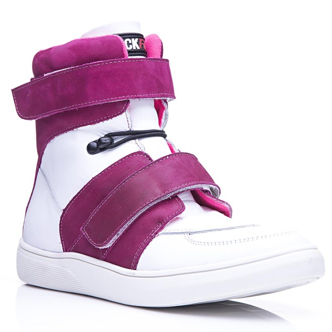 Tênis Rockfit Van Halen em Couro Branco e Rosa O Tênis RockFit Cano Alto Van Halen em couro Branco e Rosa, acompanha as tendências da moda internacional.