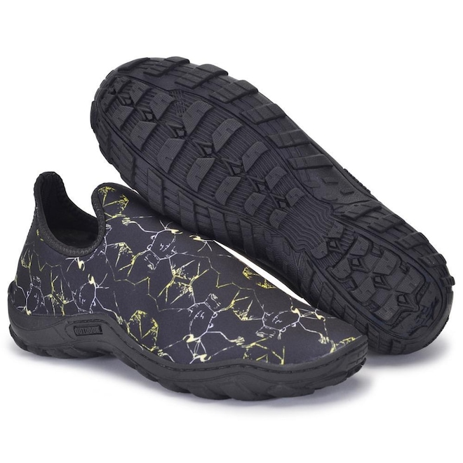 O solado antiderrapante e com tecnologia de drenagem de água é especialmente projetado para fornecer aderência máxima em terrenos secos, molhados e irregulares. A saída de água rápida torna o tênis leve e estável, mesmo em superfícies úmidas, oferecendo segurança em cada passo.