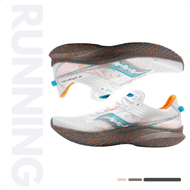 O amortecimento PWRRUN, aplicado na entressola, proporciona uma sensação de suavidade e um retorno de energia incomparável, garantindo passadas mais ágeis e responsivas. O Kinvara 14 vai te impulsionar, mantendo seu ritmo acelerado sem comprometer o conforto.
