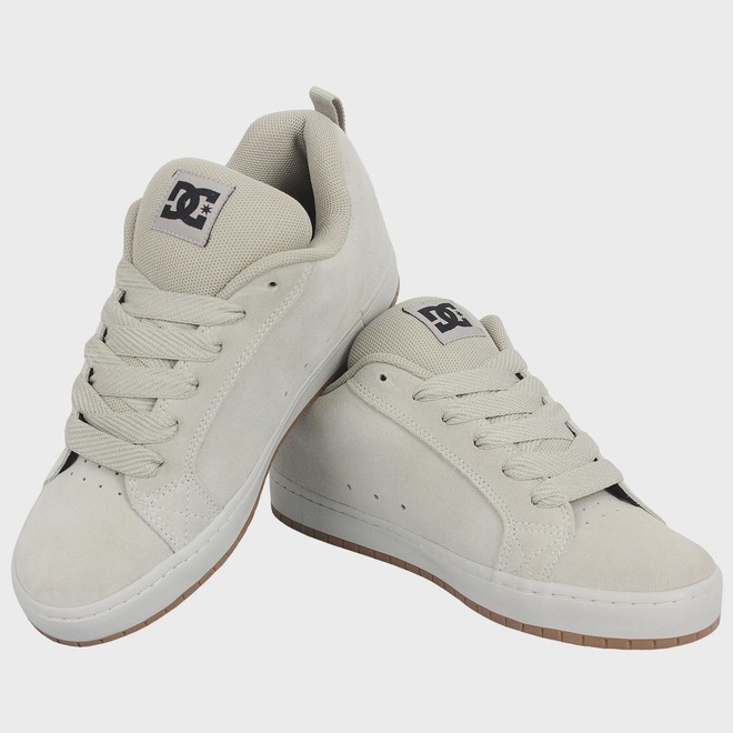 O Tênis DC Shoes New Court Graffik SE Pelican Gum tem o cabedal produzido em camurça que garante maior durabilidade, solado "Cup Sole" tecnologia que produz uma sola mais resistente exclusiva DC Shoes. Tradicional logo DC Shoes bordado. Lingua em espuma almofadada de tecido leve para circulação de ar.