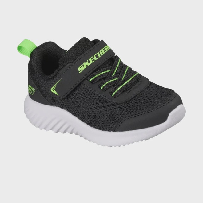 O Tênis Skechers Bounder Quantarun Infantil oferece conforto e praticidade, com cabedal respirável, palmilha acolchoada e fechamento fácil com elástico e velcro. Leve, estável e lavável, é ideal para o dia a dia.