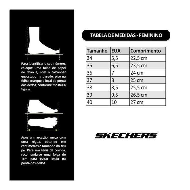 Reforço acolchoadoAltura do Cano Cano Curto Pisada Neutra Tipo de Amarração Cadarço Estampa do Logo Estampado no Cabedal Passante Contraforte traseiro Faixa Etária Adulto Garantia do Fornecedor Contra Defeito de Fabricação Conteúdo da Embalagem 1 Par SAC do Fornecedor SKECHERS: (11) 3894-4100 Solado EVA