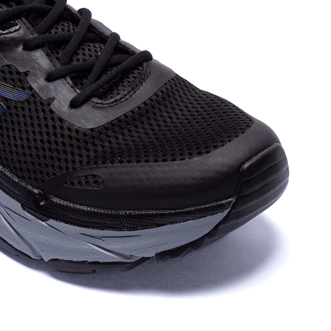 O tênis masculino possui cabedal (parte superior do calçado) em material sintético e em mesh (malha de tramas abertas), que permite maior respirabilidade durante o uso, a sua entressola é em EVA e seu solado em borracha tratorada para você conseguir desbravar as trilhas com muito mais facilidade.